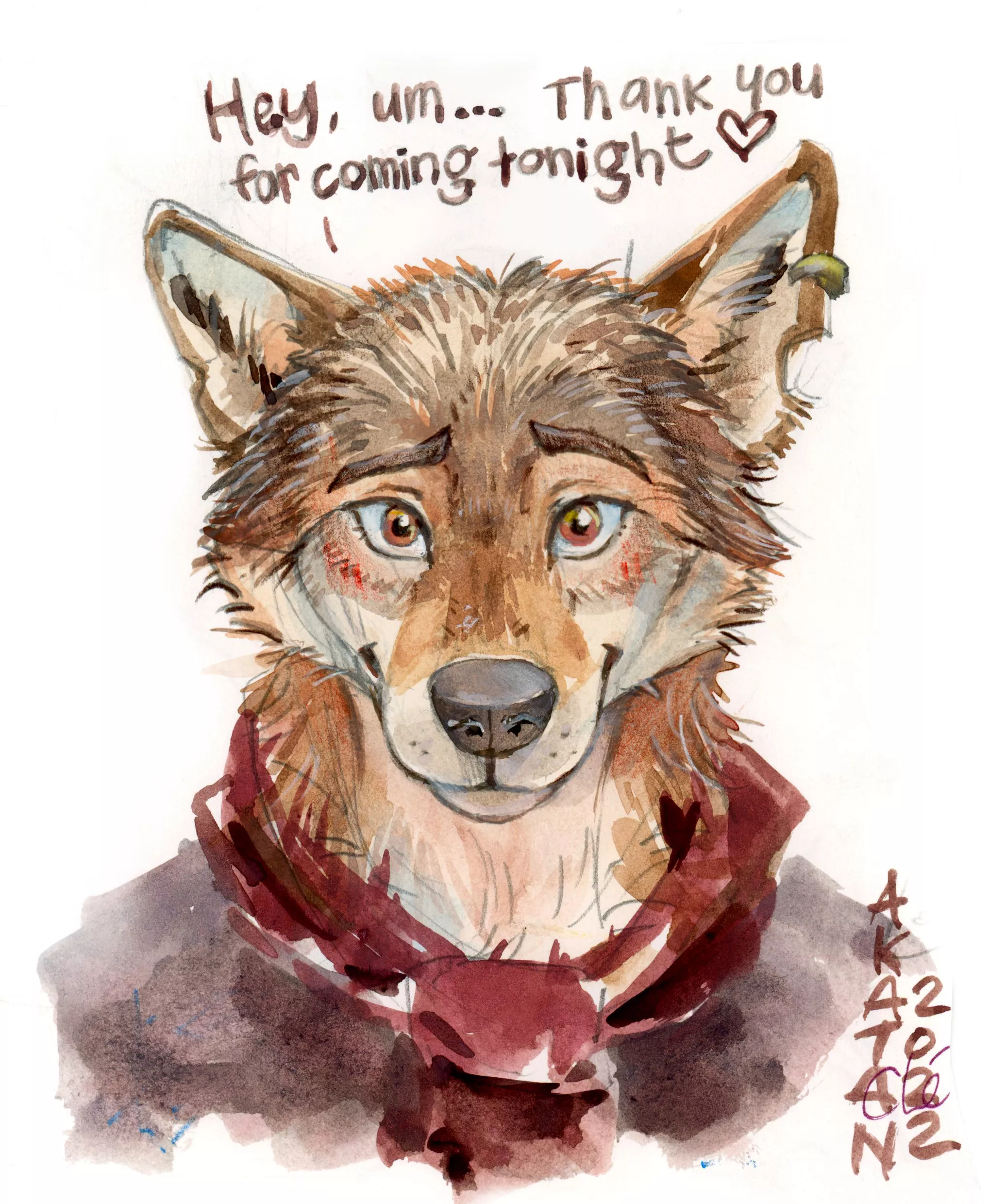 "Hey... Thank you for coming tonight <3" (my art, watercolor on paper. @akatan_art on Insta/twitter)