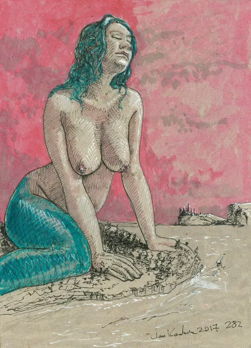 "not so little mermaid" by jandrawserotica (OC)