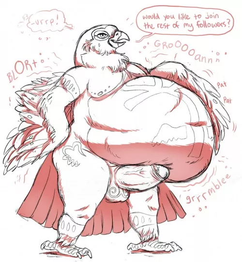 "To Fatten a God", by AgtNightWolf. (Male pred, multiple prey). I wish someone worshiped my prey stuffed belly too 👅