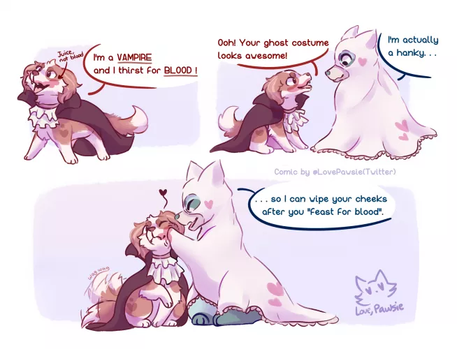 "Match-y Outfits". Late Halloween Comic but it's better late than never ^^. (art by me Twitter @lovepawsie)